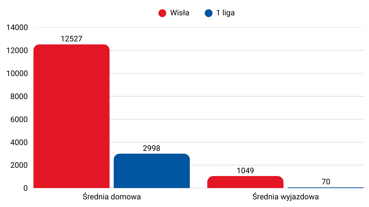 Badania naukowe wskazują, że brak kibiców gości najmocniej uderza w "wielkie kluby". A Wisła Kraków, nawet grając w I Lidze, bez wątpienia takim klubem jest – ze swoją historią (13 mistrzostw Polski), ogromną bazą fanów (TOP3 w Polsce w social mediach) i budżetem (44 mln zł w sezonie 2023/24, ponad 2,5-krotnie wyższy od średniej ligowej). A przede wszystkim ze swoją bazą wiernych kibiców. W sezonie 2022/2023, średnia domowa 1 ligi (bez Wisły) wynosiła 2.998 osób, z kolei średnia Wisły - 12.527 ("niska" frekwencja wynikała z modernizacji obiektu w Krakowie i ograniczonej liczby miejsc). W sezonie 2023/2024 mecze Wisły oglądało średnio 16.613 osób, a pozostałych klubów 1 ligi raptem 3.714 osób.